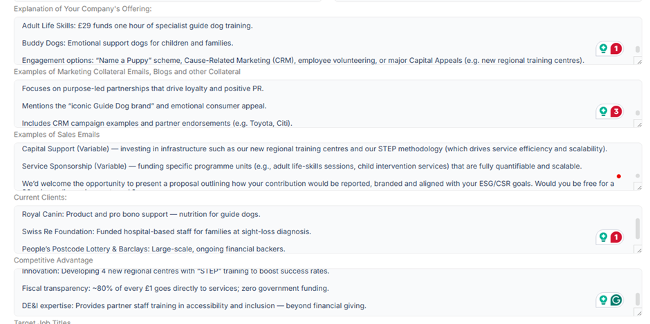“This is a marketing lead in a company that a) supports charitable giving and b) has talked about dogs at some point over the last year. Write me a friendly and well-researched introduction. Avoid jargon.”