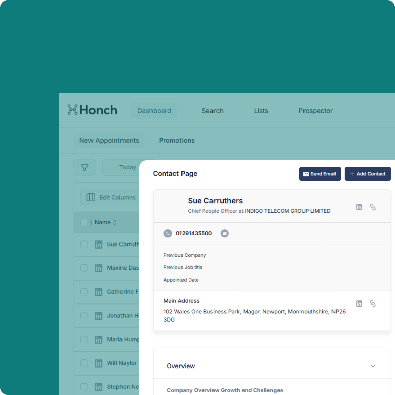 Honch tracks sectors, people and fast-growing companies. We unlock worlds of new prospects for our clients to target.