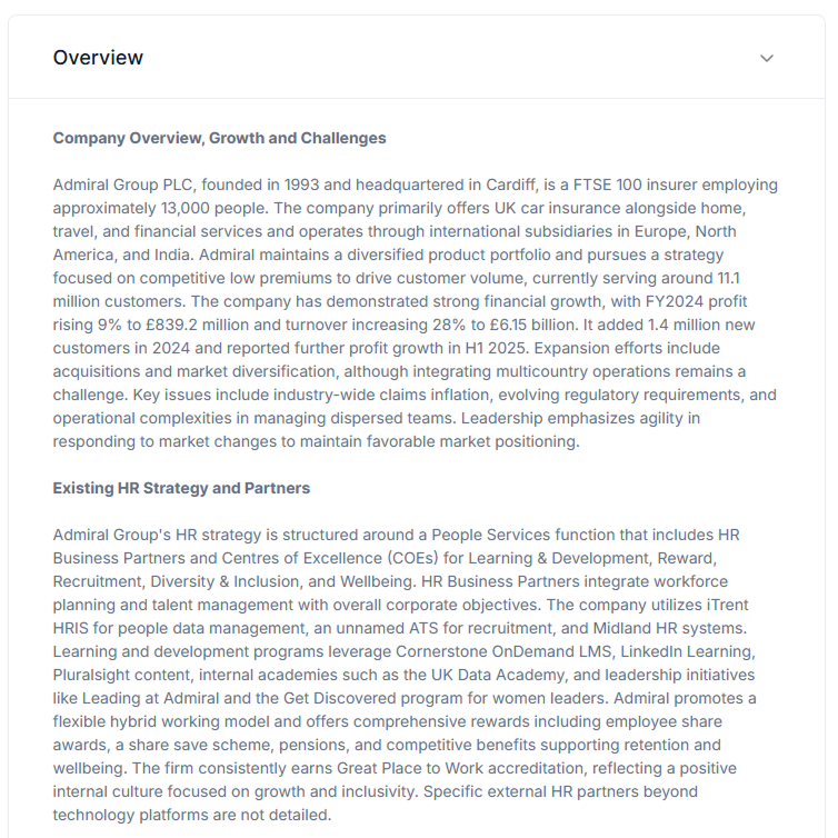 HR Research: Understand which providers are currently being used, the types of leadership development programmes being run, or how companies are expanding headcount.